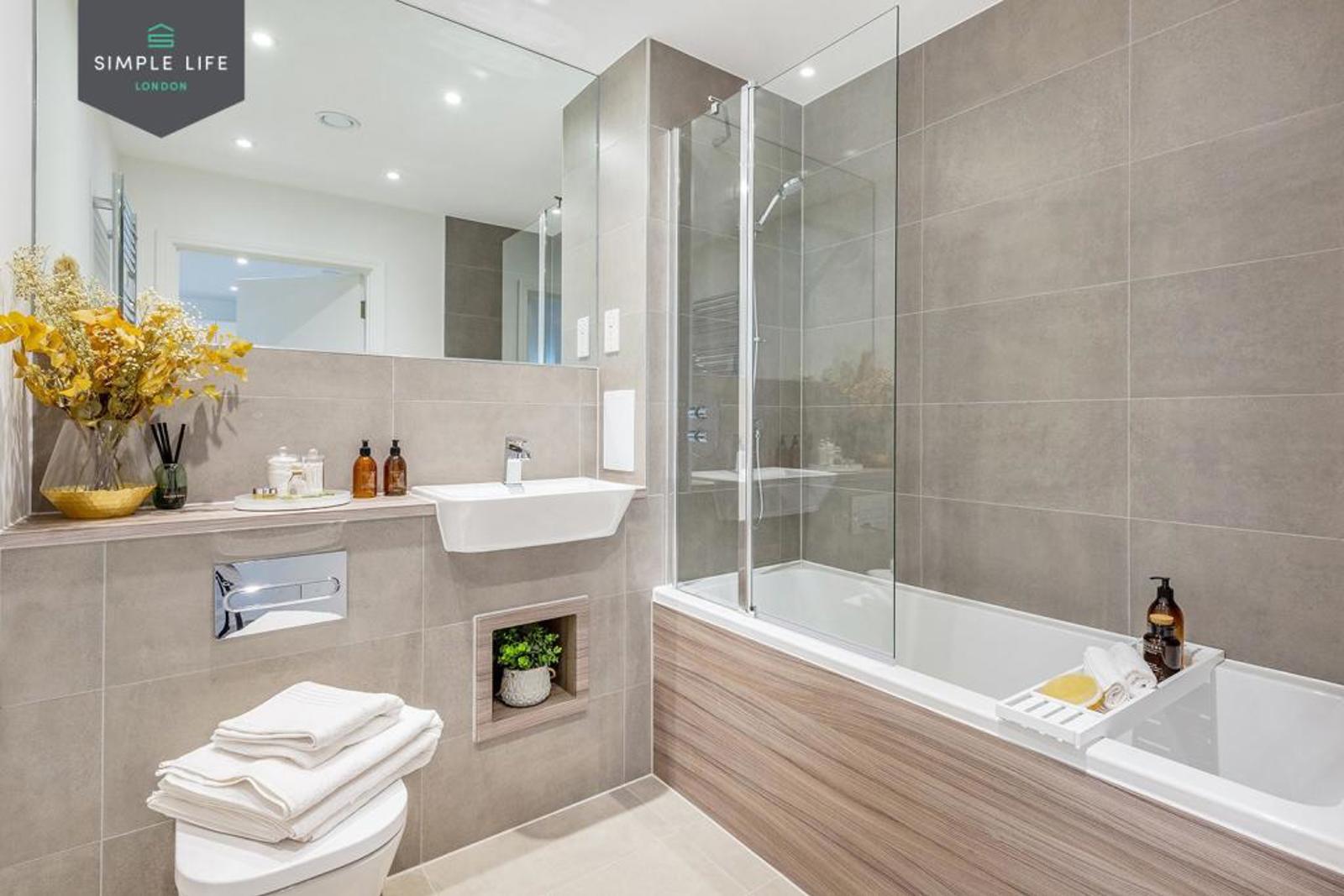 Your kitchen lines one wall of the apartment with integrated appliances and modern worktops, leaving plenty of floorspace to relax and entertain. In summer months, this can be extended through the sliding doors out to your balcony.