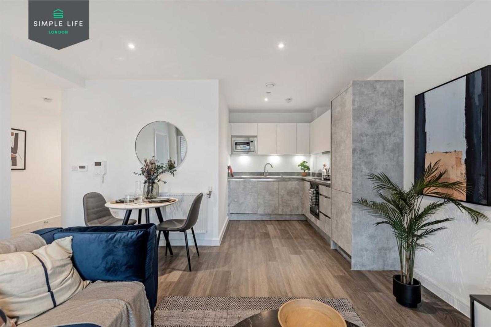 Your kitchen lines one wall of the apartment with integrated appliances and modern worktops, leaving plenty of floorspace to relax and entertain. In summer months, this can be extended through the sliding doors out to your balcony.