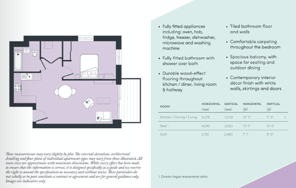 As soon as you enter the property, you are welcomed by the open plan kitchen, living and dining area. The L-shape kitchen worktops make great use of the area to ensure maximum living and entertaining space. Enjoy the views and the natural light from the sliding doors leading out to the balcony.