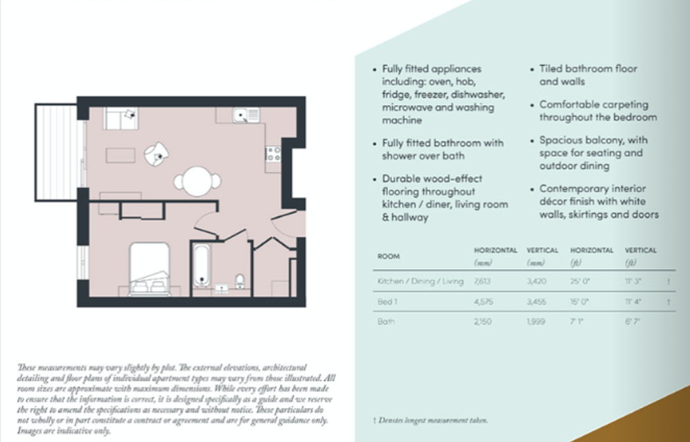 To the other side of the apartment, sits the open plan kitchen, living and dining area. The worktops make great use of the area to ensure maximum living and entraining space. Enjoy the views and the natural light from the sliding doors leading out to the balcony.