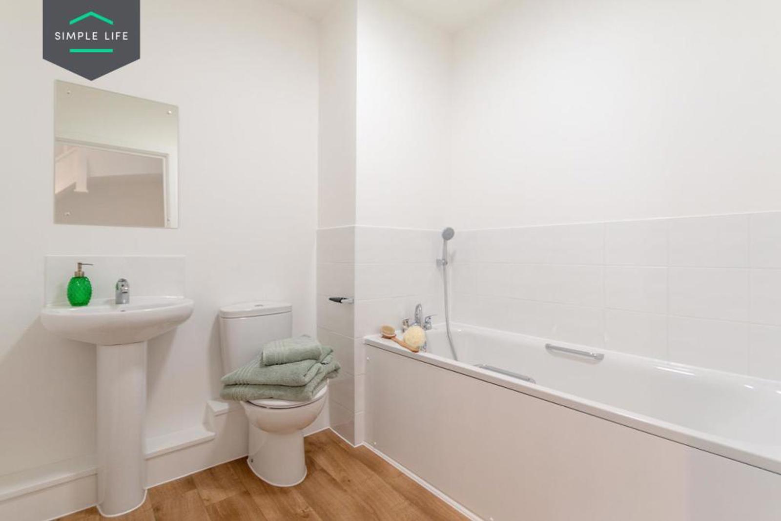 - Fully fitted white bathroom suite, downstairs WC and ensuites where applicable with washbasins, baths and showers