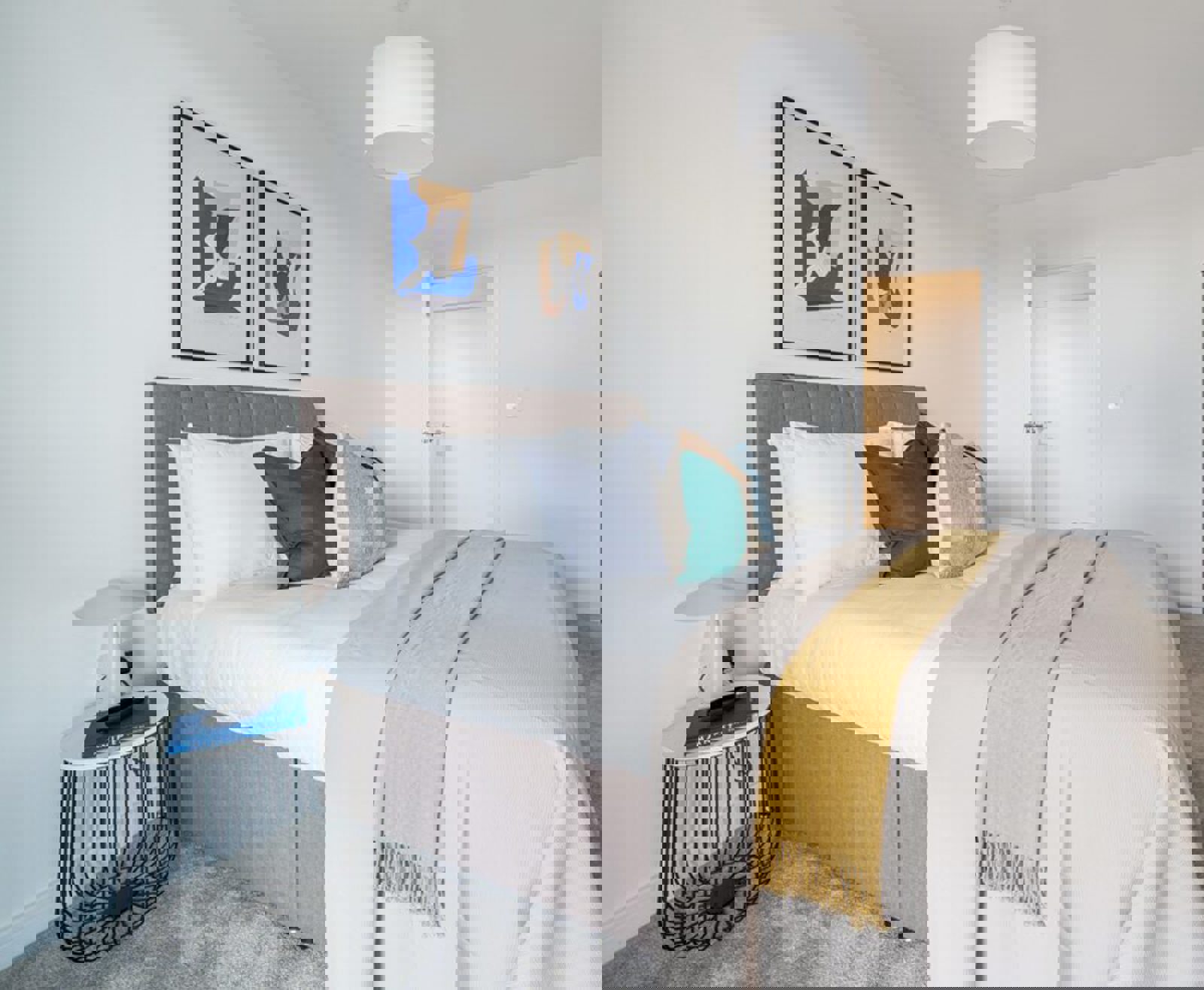 - Hard-wearing bedroom and stair carpets in neutral grey