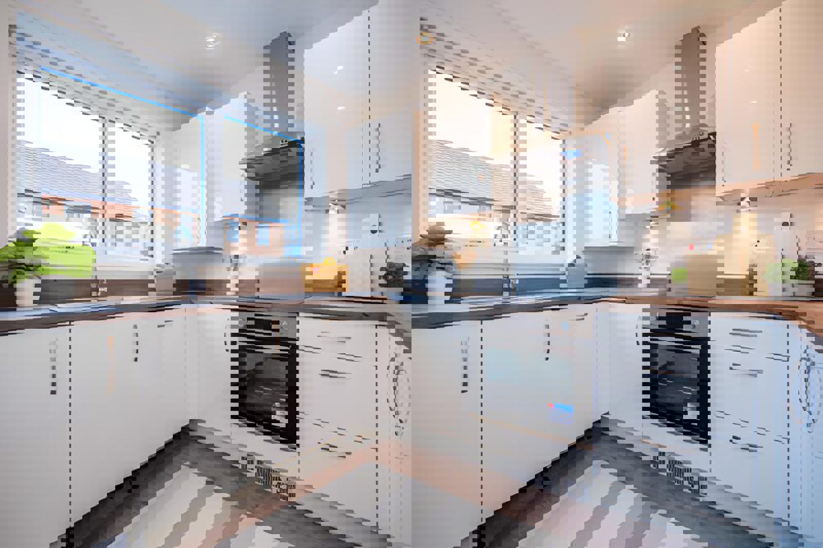 - Fully integrated kitchen appliances including: electric oven, ceramic hob, washer/drier, fridge/freezer and dishwasher