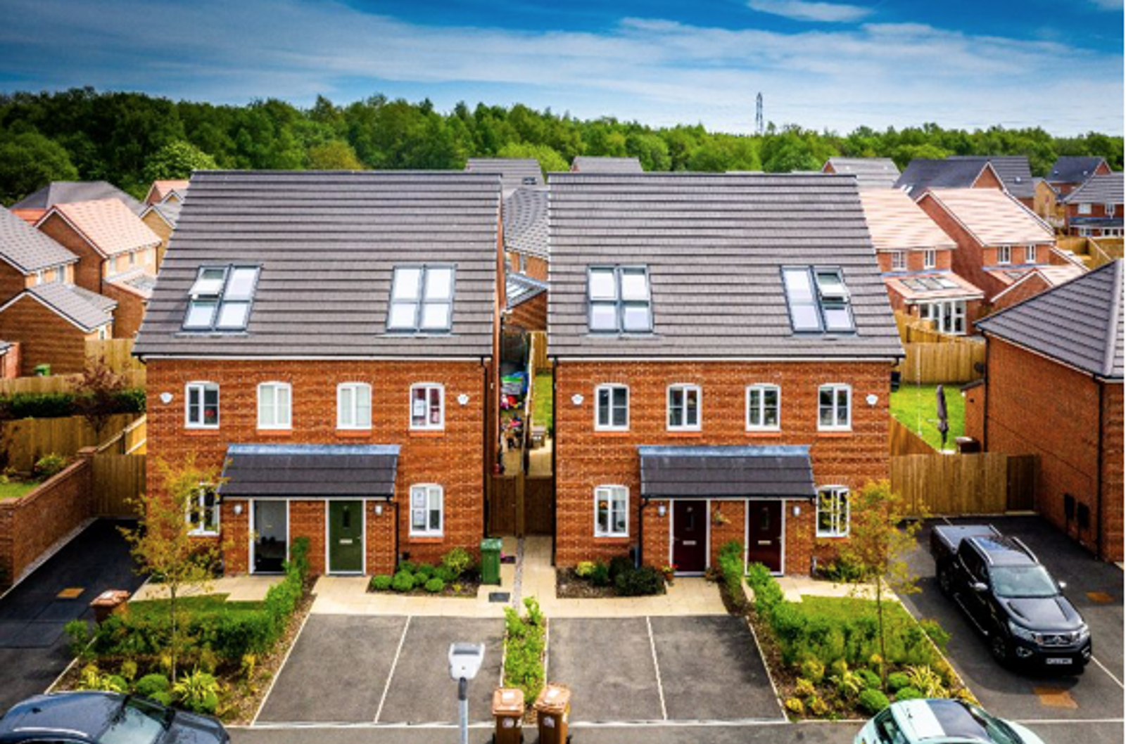 - Off-road parking with landscaped front garden for some houses
