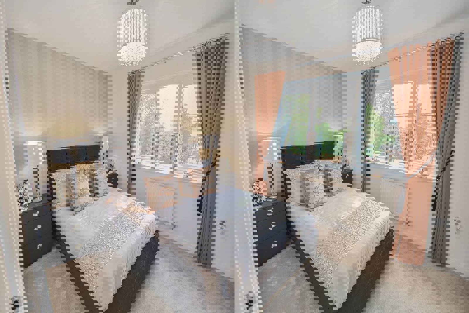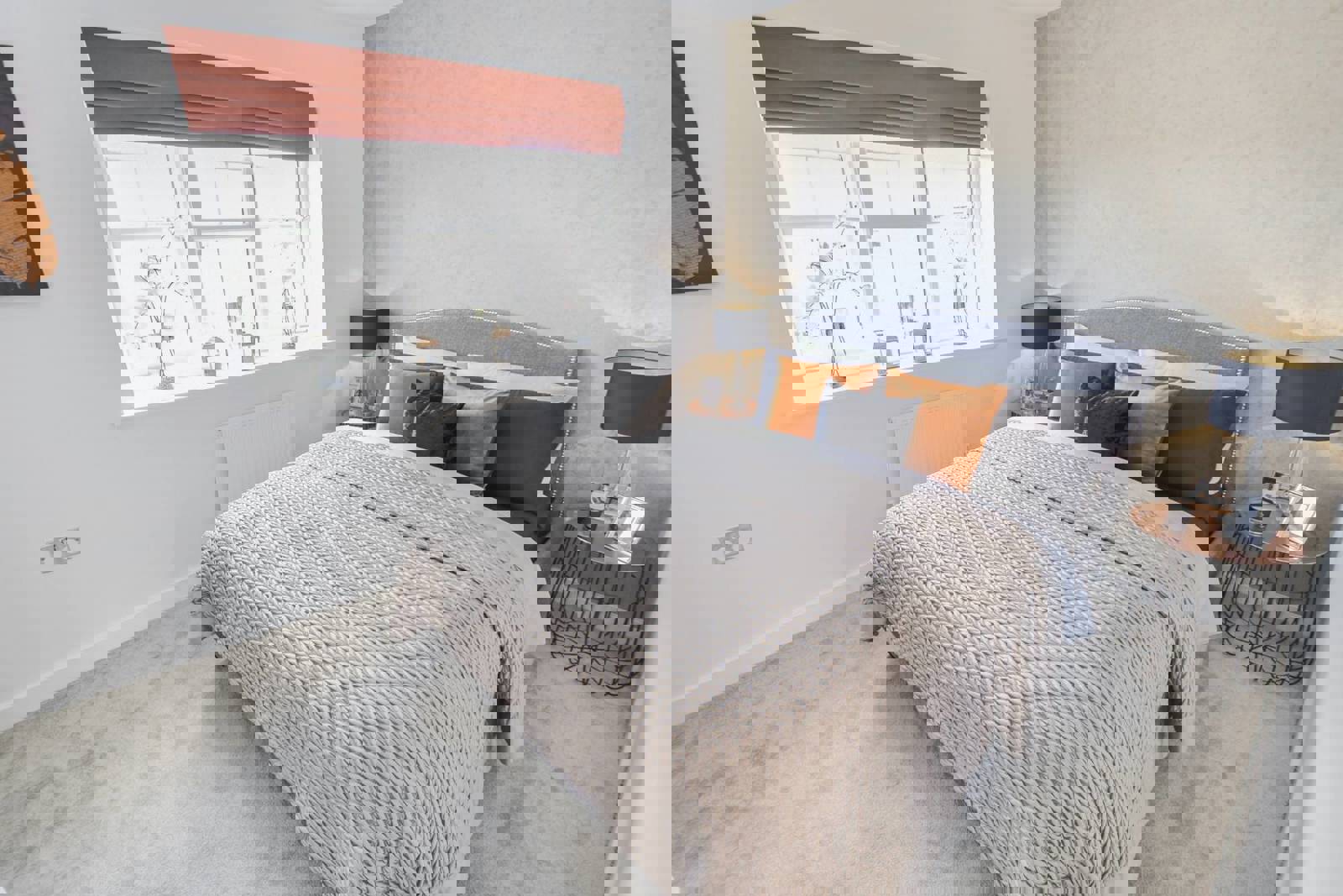 - Hard-wearing bedroom and stair carpets in neutral grey
