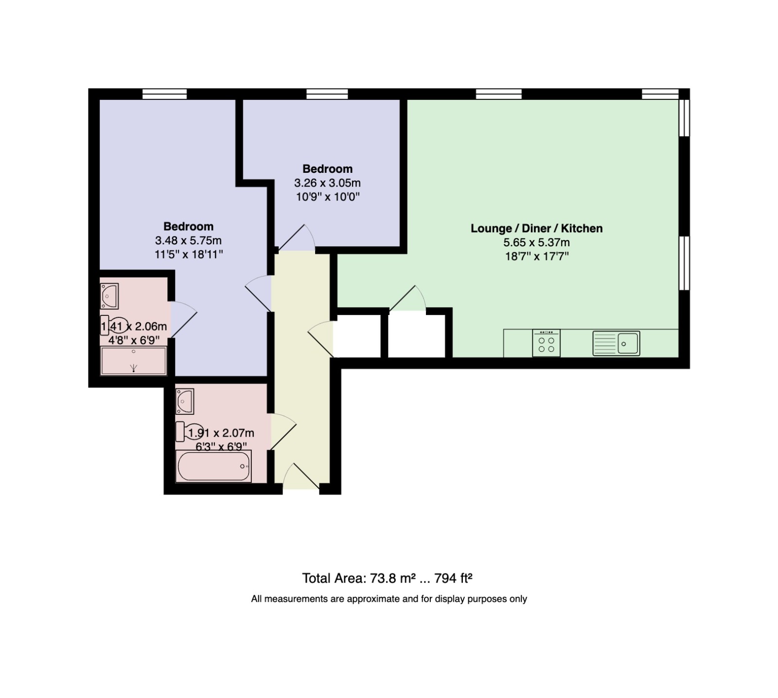 Our Apartments boast floor to ceiling windows ensuring plenty of natural light into the substantial open plan kitchen/living space and both bedrooms. Rooms benefit from fitted roller blinds and well-planned layouts maximising space and storage.