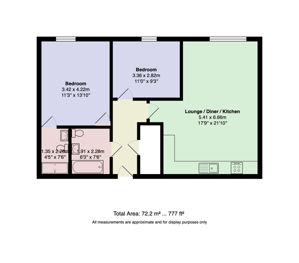 Our Apartments boast floor to ceiling windows ensuring plenty of natural light into the substantial open plan kitchen/living space and both bedrooms. Rooms benefit from fitted roller blinds and well-planned layouts maximising space and storage.