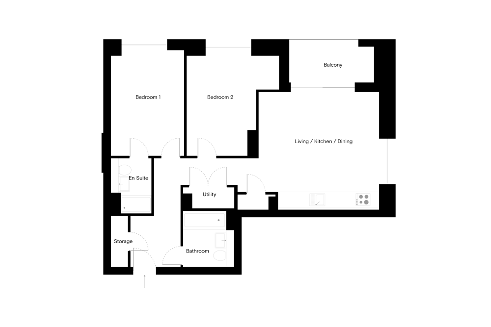 Naturally bright, floor to ceiling windows and a spacious, open-plan living area with a fully-equipped kitchen with modern appliances and private balcony.