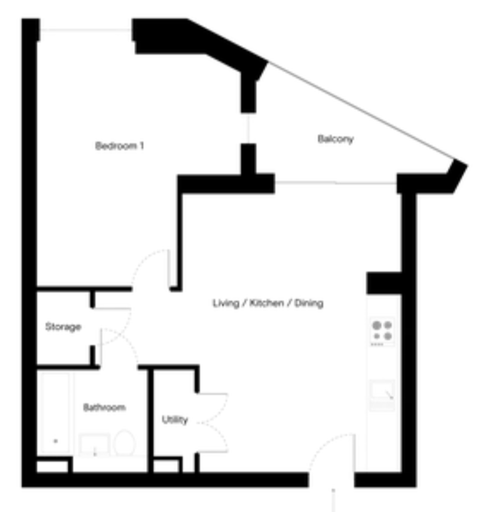 Naturally bright, floor to ceiling windows and a spacious, open-plan living area with a fully-equipped kitchen with modern appliances and private balcony.