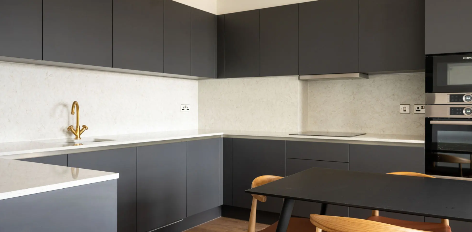 Each apartment comes with an open plan fully fitted kitchen equipped with state-of-the-art Bosch appliances. Apartments are available furnished or unfurnished, with furniture packages.