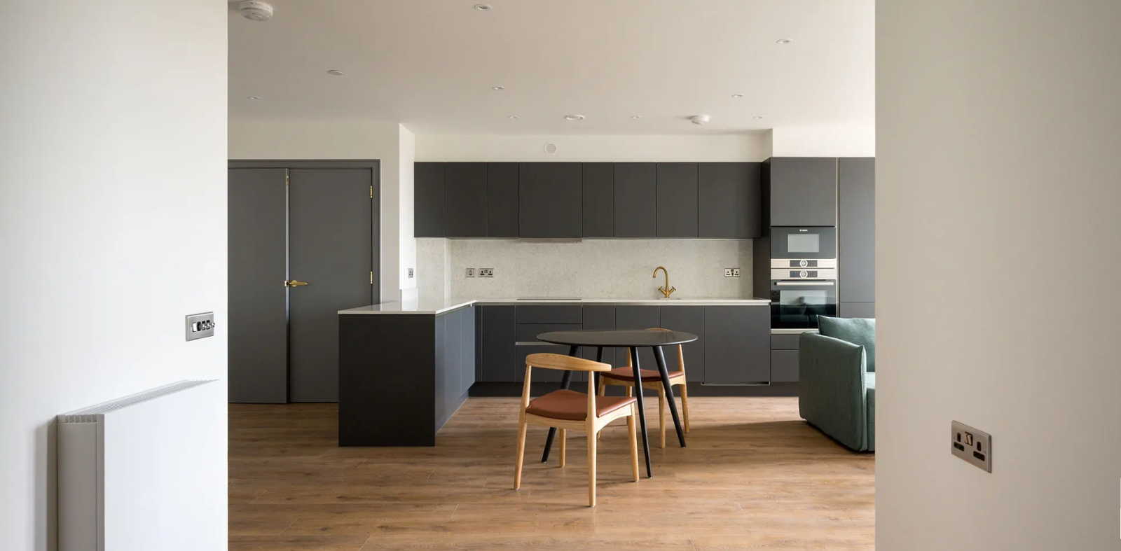 Each apartment comes with an open plan fully fitted kitchen equipped with state-of-the-art Bosch appliances. Apartments are available furnished or unfurnished, with furniture packages.