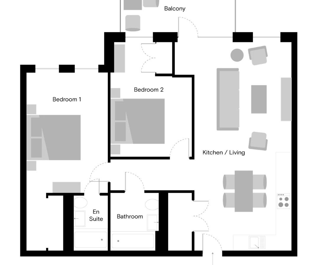 Each apartment comes with an open plan fully fitted kitchen equipped with state-of-the-art Bosch appliances. Apartments are available furnished or unfurnished, with furniture packages.