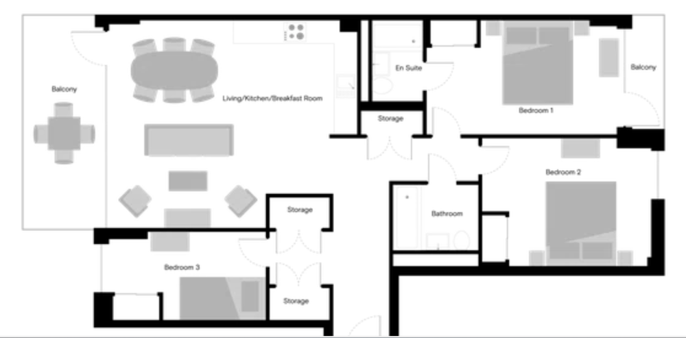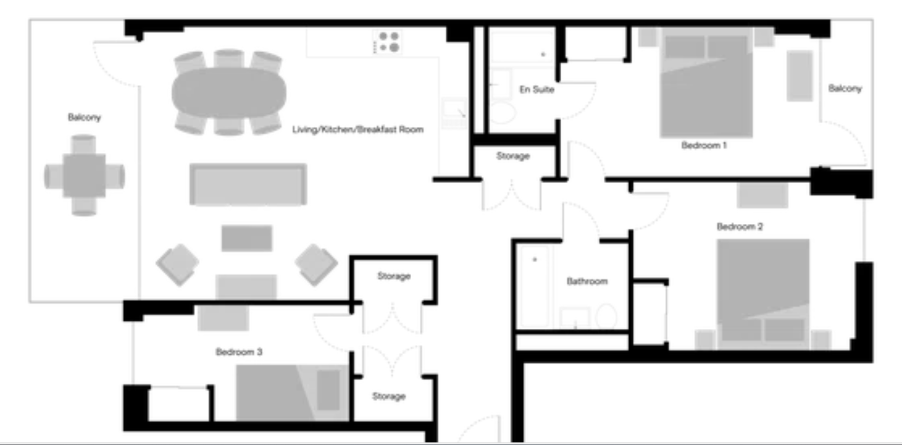 Naturally bright, floor to ceiling windows and a spacious, open-plan living area with a fully-equipped kitchen with modern appliances and private balcony.