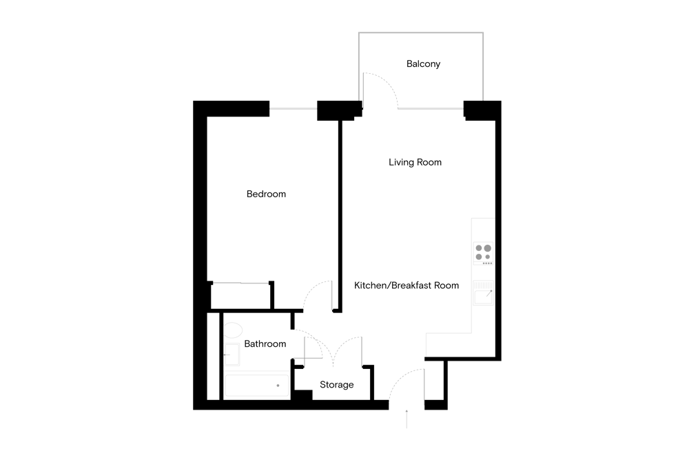 Our bedrooms enjoy sleek, integrated storage with a full-size tub in the modern bathroom.