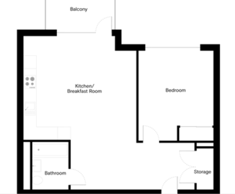 Naturally bright, floor to ceiling windows and a spacious, open-plan living area with a fully-equipped kitchen with modern appliances and private balcony.