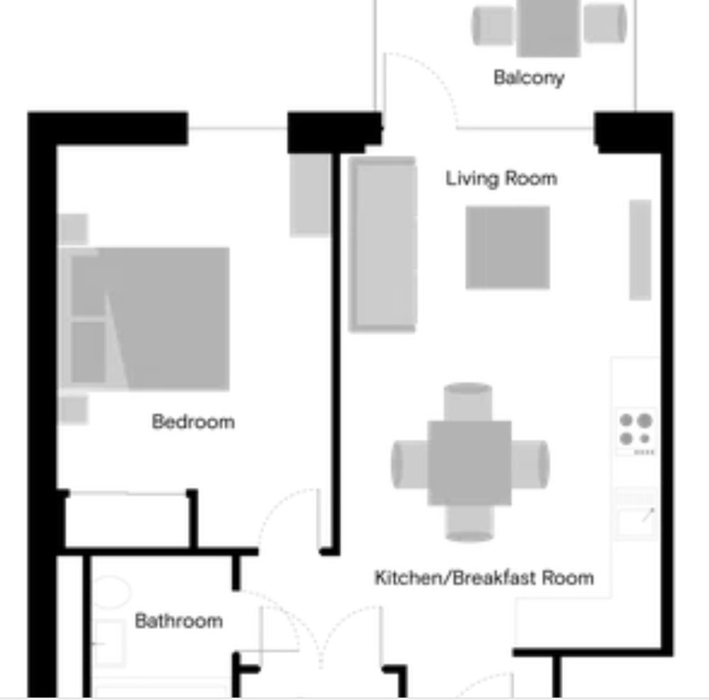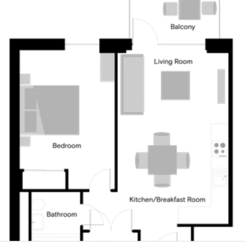 Naturally bright, floor to ceiling windows and a spacious, open-plan living area with a fully-equipped kitchen with modern appliances and private balcony.