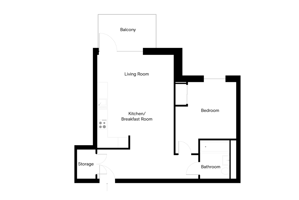 Naturally bright, floor to ceiling windows and a spacious, open-plan living area with a fully-equipped kitchen with modern appliances and private balcony.