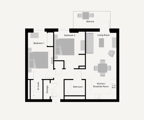 Naturally bright, floor to ceiling windows and a spacious, open-plan living area with a fully-equipped kitchen with modern appliances and private balcony.