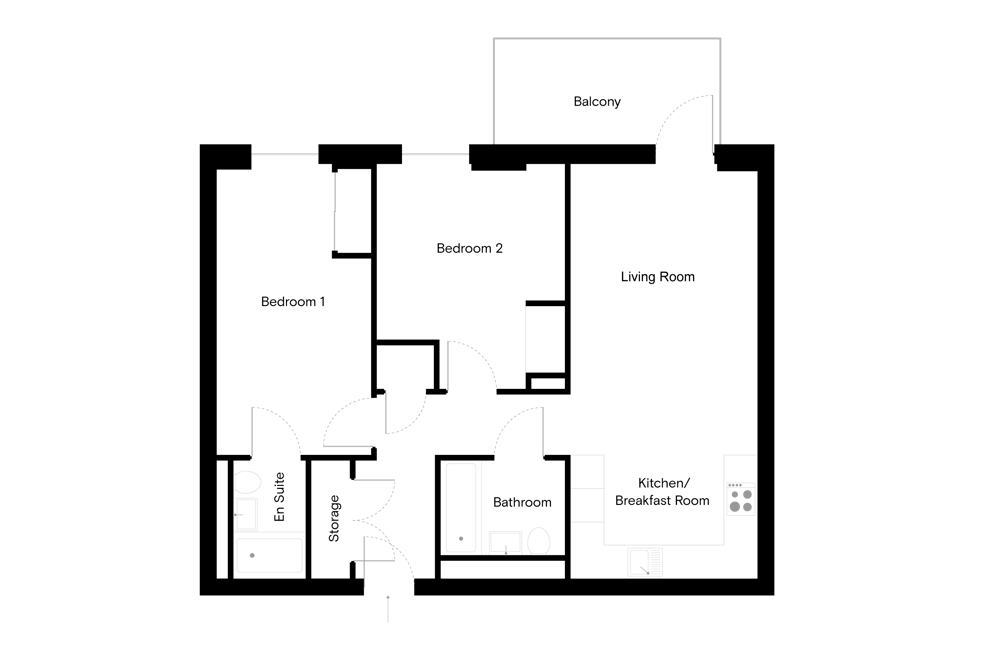 Naturally bright, floor to ceiling windows and a spacious, open-plan living area with a fully-equipped kitchen with modern appliances and private balcony.